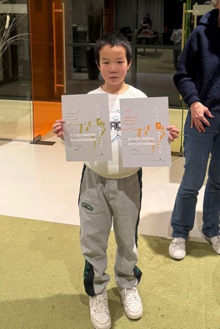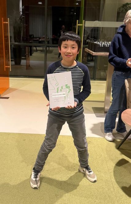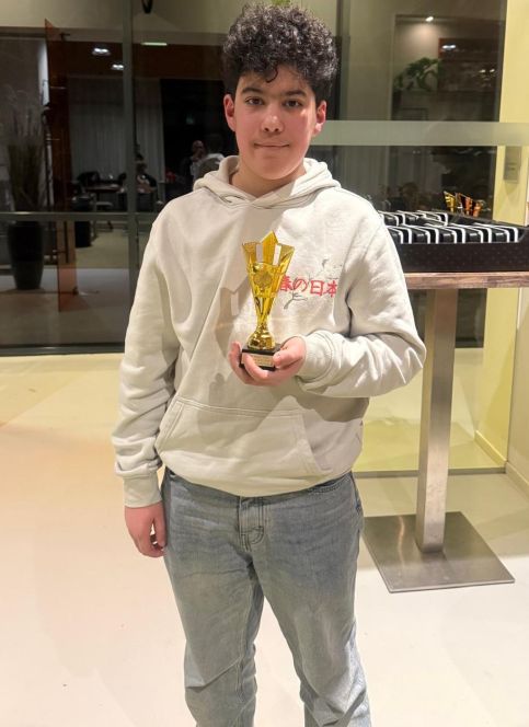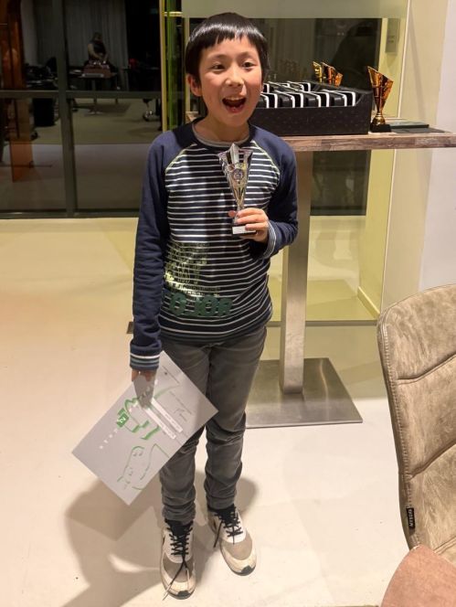 Jeugdnieuws: Eregalerij 1e cyclus 2025/2026 door Margreet, 5 maart 2026 Het was dan wel vrijdag de 13e (februari), maar we konden toch weer een aantal kinderen gelukkig maken! Er zijn diploma’s uitgereikt, en bekers voor de eerste helft van de competitie. Dus hier een rondje foto’s, gemaakt door onze hoffotograaf Bahman! Eerst de diploma’s: ![]() Liva heeft stap 2 gehaald! ![]() Xin Yi: ook stap 2! ![]() William stap 2+! ![]() Luka heeft stap 3! ![]() Hongbo heeft zelfs 2 examens gedaan en gehaald! Stap 3 en 3+. In de competitie hadden we prijzen in 3 groepen. In de hoogste groep, Champions League 1 (of A?) was de competitie nog lang niet uitgespeeld, dus daar hebben we pas aan het einde van het seizoen prijzen voor, maar in de Champions League 2, de Premier League en de Second League zijn er nu prijzen uitgereikt. Natuurlijk was niet iedereen aanwezig, maar de meesten hebben hun prijs wel gekregen. In de Champions League 2: ![]() 1e prijs voor Alt! De winnaars van de 2e en 3e prijs waren er niet. Hidde is 2e geworden en Daniel 3e. In de Premier League moest nog een beslissingswedstrijd worden gespeeld om de 3e plaats tussen Hongbo en Biba. Die werd gewonnen door Hongbo. ![]() Aymar werd hier 1e! ![]() William was 2e! ![]() En Hongbo dus 3e. Ook in de second league moest er eigenlijk een beslissingswedstrijd worden gespeeld, namelijk om de 2e en 3e plaats, tussen Klaas en Pepijn. Echter, Pepijn verblijft voor een aantal maanden in Oostenrijk, en hij kwam er niet voor terug... ![]() Klaas werd dus 2e! ![]() En de winnaar in de Second League was Bas!! De afwezige prijswinnaars kunnen natuurlijk hun prijzen nog meekrijgen. De 3e prijs van Pepijn moeten we aan zijn broer meegeven. Herinner me er nog even aan svp! |